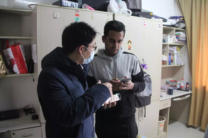 1月24日,国际教育学院副院长张国权带队走访留学生宿舍,看望并慰问春节期间留校的留学生,积极在留学生中开展疫情防控宣传工作。