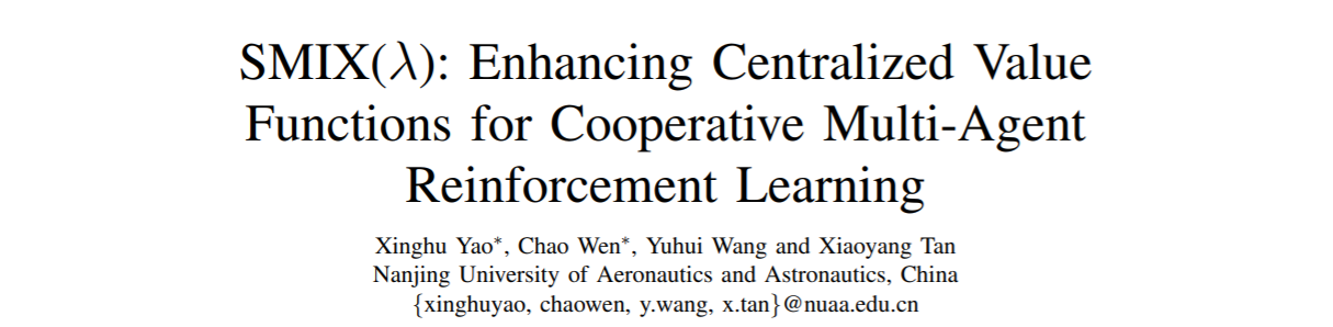 论文《SMIX(λ):Enhancing Centralized Value Functions for Cooperative Multi-Agent Reinforcement Learning》提出了一种异策略的合作场景下的多智能体强化学习方法,SMIX(λ)。SMIX(λ)通过放松已有算法中的过强假设来学习到更优的策略,利用多步奖励来更准确的估计值函数,并且采用经验回放机制来提高学习的效率。该算法不但实现简单,能够有效避免多智能联合动作空间的维度灾难问题,而且理论上具有较好的收敛性质。在星际争霸微操作环境(该环境提供不同的多对多战斗场景)上的实验表明,SMIX(λ)算法优于几种先进的中心训练分散执行的方法。