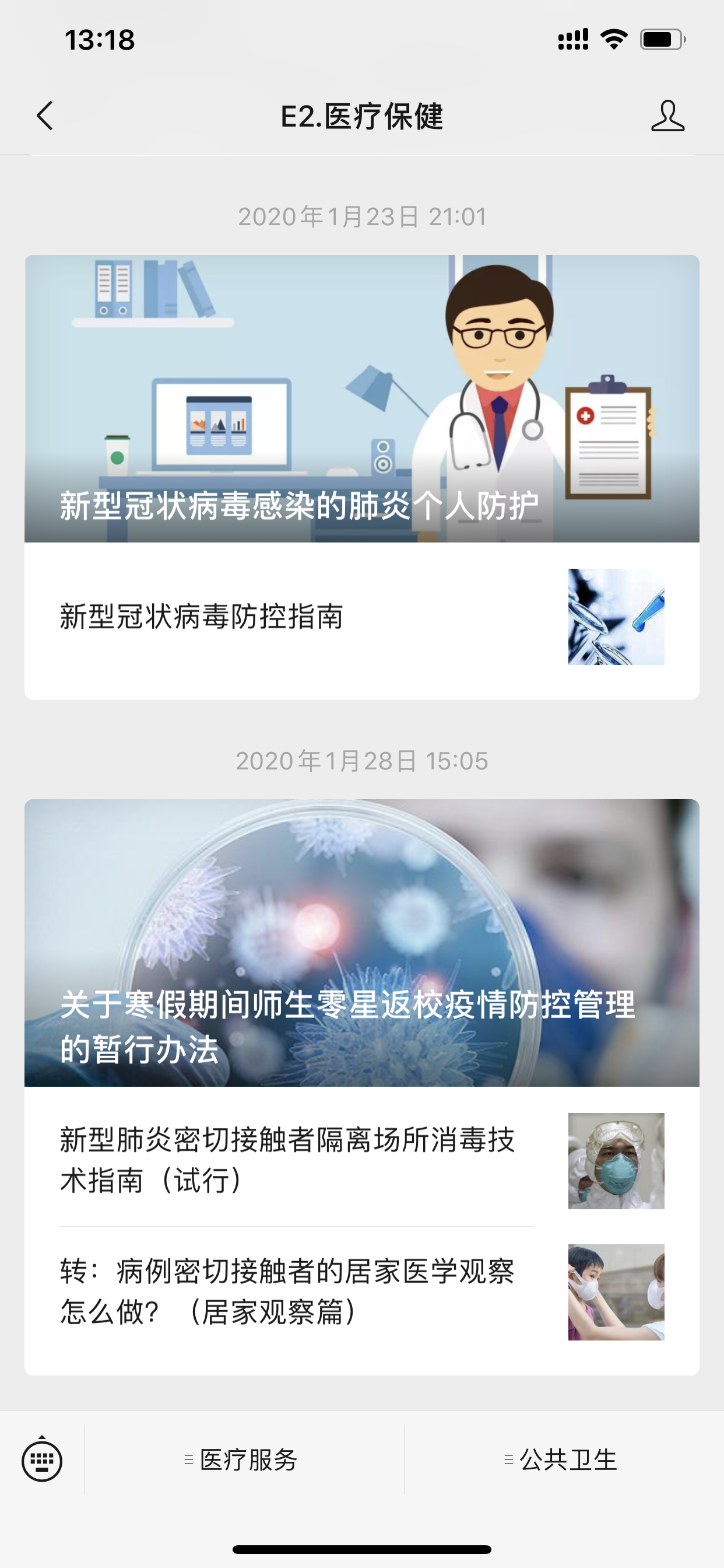 校医院寒假期间,明故宫和将军路两校区均有医务人员值班,每日密切关注学校各学院、各部门上报的外出返宁人员信息,尤其对从湖北(武汉)、温州等高危疫区返宁的职工更是具体联系到人,重点监测其是否有体温变化、咳嗽、进行性呼吸困难等临床指征,并对周围密切接触人员进行筛查,对所有密接人员进行自我防护、主动隔离等操作的宣教和指导,要求一旦发现有疑似患者,要及时报告校医院保健科,在校医院医生的指导下对相关人员进行追踪、管理和处置,以有效控制疫情发展。