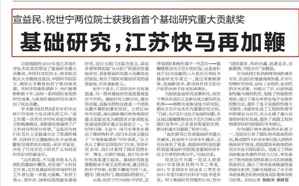 近日,江苏省政府发布《关于2019年度江苏省科学技术奖励的决定》,授予ac米兰官网中文网站宣益民院士、南京大学祝世宁院士省基础研究重大贡献奖。这是江苏省首次设置“基础研究重大贡献奖”。