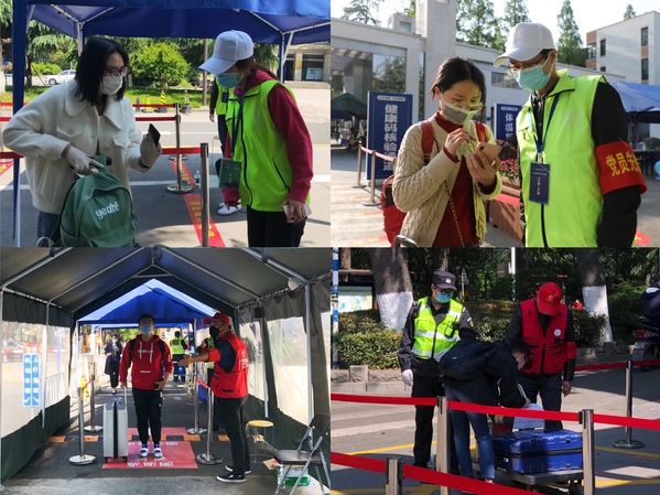 按照“错峰错时、分期分批”返校的开学要求,4月23日-26日,ac米兰迎来了2020年春季学期首批返校学生。为了确保学生返校工作顺利开展,机关党委、将军路校区党工委、校团委组织相关单位150余名教职工,后勤集团组织50余名员工,共同组建教职工志愿者团队,从早上7:30到晚上20:00,排班轮岗,每个班次连续工作六小时,负责秩序维护、体温检测、健康码核验、行李运送等志愿工作。
