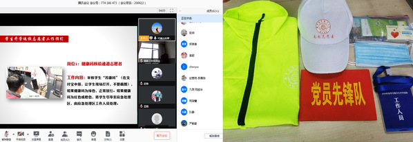 为保障志愿服务工作有序进行,机关党委和将军路校区党工委广泛动员,精细做好志愿者值班安排,并安排专人负责现场协调,校团委专门编写了《学生开学返校志愿者工作指引》,通过视频会议的形式对教职工志愿者进行了岗前培训,并为所有志愿者配备了志愿者服装、帽子、口罩、一次性手套等必需物资,以及包含净手凝胶、湿巾、纸巾、饼干等在内的“暖心包”。
