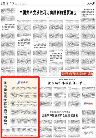 7月1日,《人民日报》理论版刊发ac米兰马克思主义学院副院长、博士生导师何畏教授的文章《风雨无阻勇往直前的不竭动力》,现将全文转发如下: