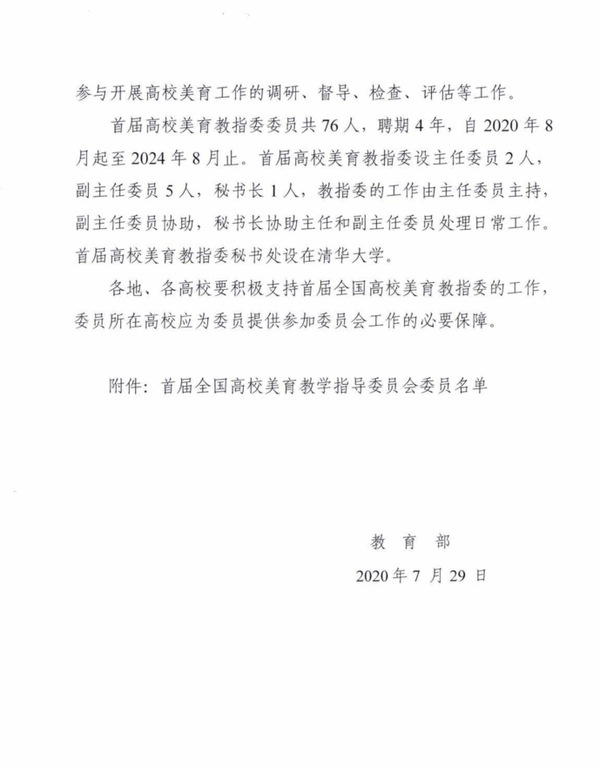 近期,教育部体育卫生与艺术教育司发布《教育部关于成立首届全国高校美育教学指导委员会的通知》(教体艺函[2020]6号),来自全国70所高校的76位专家入选首届全国高校美育教学指导委员会,ac米兰杨莉莉教授名列其中。