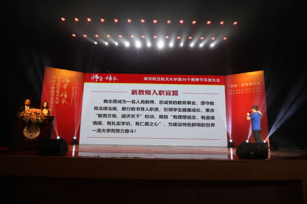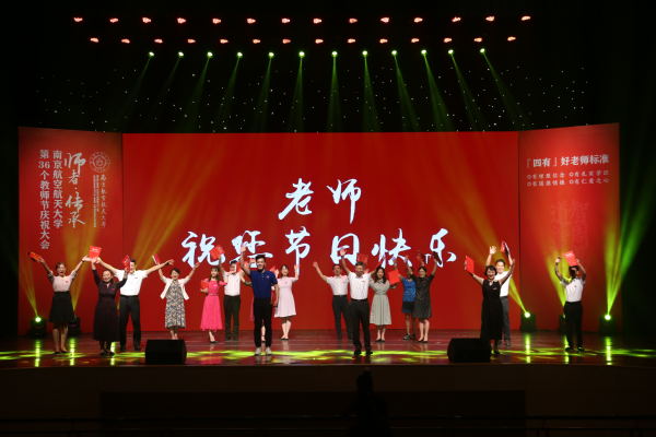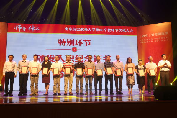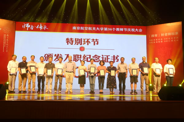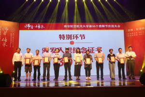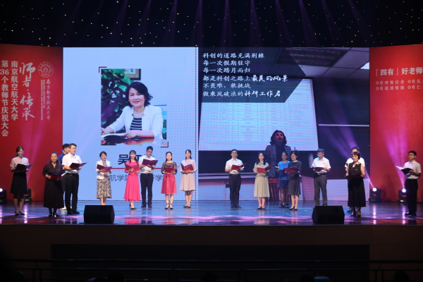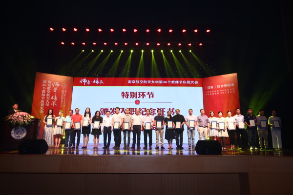 入职10年教师代表、外国语学院徐智鑫副教授从一名长期从事一线教学的普通老师的视角,回忆了和学生在一起的点滴时光,以及与同事之间相互协作、共同学习、共同进步的经历。入职20年教师代表、自动化学院刘闯教授结合自己的从教经历,从潜心治学、关爱学生、坚守师德三个方面,谈了对教师这份职业的理解;入职30年教师代表、航空学院姚卫星教授作为发言,回顾了自己与祖国同成长的经历,并分享了从教30年的心得体会。姚卫星的数位学生专程从外地来到了庆祝大会现场,为恩师送上了祝福,并回忆了与姚卫星老师相处的点滴。