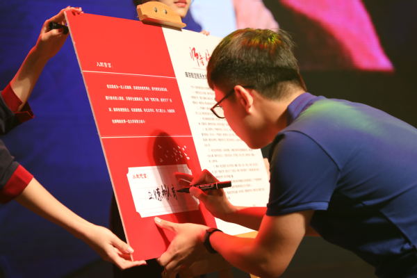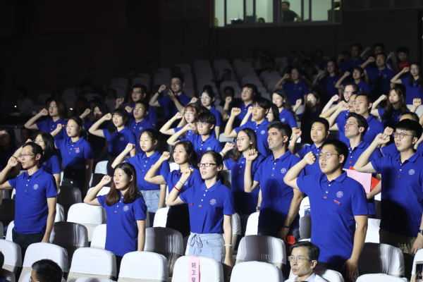 来自理学院的倪勤教授为新入职教师代表能源与动力学院王飞龙佩戴校徽,并作为退休教师代表发言。王飞龙带领全体新入职教师签署《师德承诺书》,并在王飞龙领誓下,全体新教师进行了庄严的入职宣誓,铿锵的誓言表达着他们献身教育事业、续写ac米兰明天辉煌的决心。
