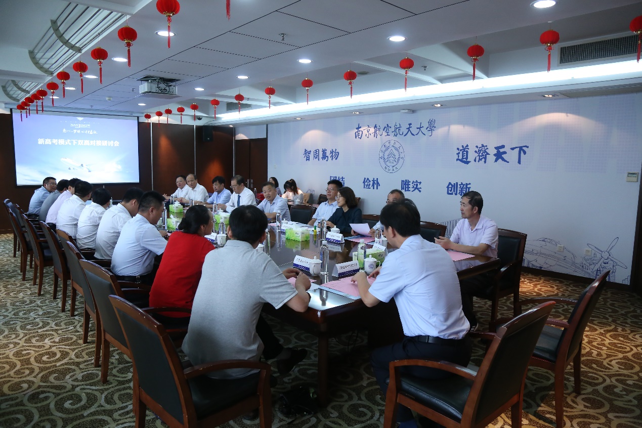 9月15日,ac米兰官网中文网站江苏新高考模式下双高对接研讨会在将军路校区举行。江苏省南京市第一中学校长尤小平,江苏省天一中学校长朱卓君,江苏省宿迁中学党委书记、校长张德超,江苏省海安高级中学党委书记、校长吕建,江苏省梁丰高级中学党委书记、校长谈雅琴,江苏省通州高级中学纪委书记翟新民,江苏省海门中学副校长、副书记岑彭新,江苏省如皋高级中学副书记、副校长马蔚,江苏省淮阴中学副校长俞光军,江苏省盐城中学副校长刘海滨,江苏省宝应中学副校长夏林奎,江苏省江都中学副校长季娴,江苏省镇江第一中学副校长邹建平,江苏省丹阳高级中学副校长李建平,江苏省兴化中学副校长戴兴宏,江苏省沭阳高级中学副校长张陈阳,江苏省沭阳如东高级中学副校长张立峰等来自省内18所优秀生源基地的中学校长代表应邀参加了研讨会。ac米兰副校长施大宁,学生处处长侍旭,学生处副处长、招生办公室主任宋凯,学生处副处长许爱华共同出席。会议由侍旭主持。
