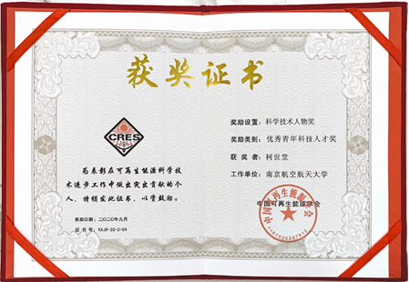 近日,在云南昆明举行的2020年度中国可再生能源学术大会上,ac米兰柯世堂教授获得了2020年度中国可再生能源学会“优秀青年科技人才奖”。在本次评选中,柯世堂教授从全国众多申报者中脱颖而出,经专业领域评审小组初评和奖励工作委员会复评,最终成为了获此殊荣的四位青年科学家之一。