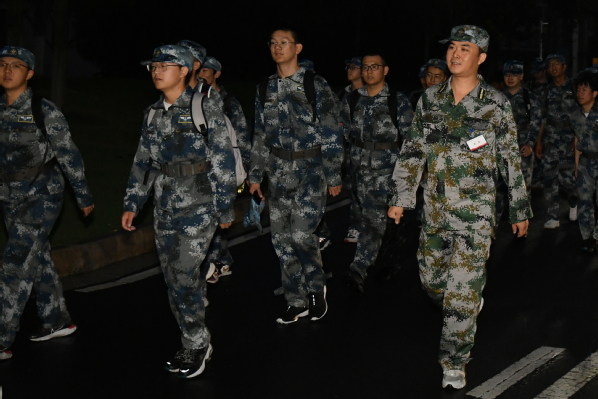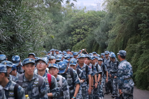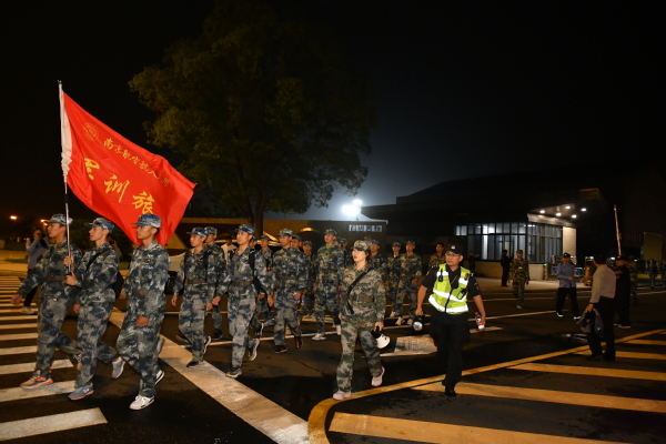 22日三点四十分,天目湖校区民航学院(飞行学院)900余名军训新生按连纵队依次在西操场列队排开。四点整,人员集结完毕,随着军训旅政委侍旭一声令下,天目湖校区野外行军拉练正式开始。拉练队伍西出ac米兰校门,沿燕山南路前进,目标直指天目湖畔。行进过程中,教官及十九名新生组成的尖刀班开路,军训旅首长们紧随其后,带领着大部队向前进发。同学们步伐整齐、斗志昂扬。队伍后方,救护车及收容车跟随,时刻保障拉练安全。经学校各部门前期协调,溧阳市公安、交警等部门提前对沿途道路实施交通管制,在各大路口均安排了充足警力,为此次拉练保驾护航。6点,拉练队伍顺利抵达天目湖畔,各连队整队并稍作休整后依次沿大坝参观并合影留念。