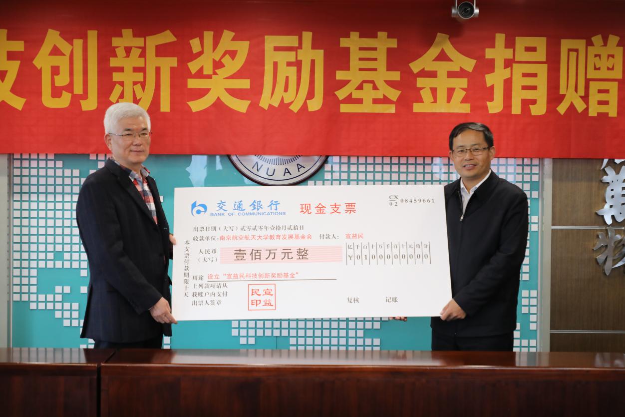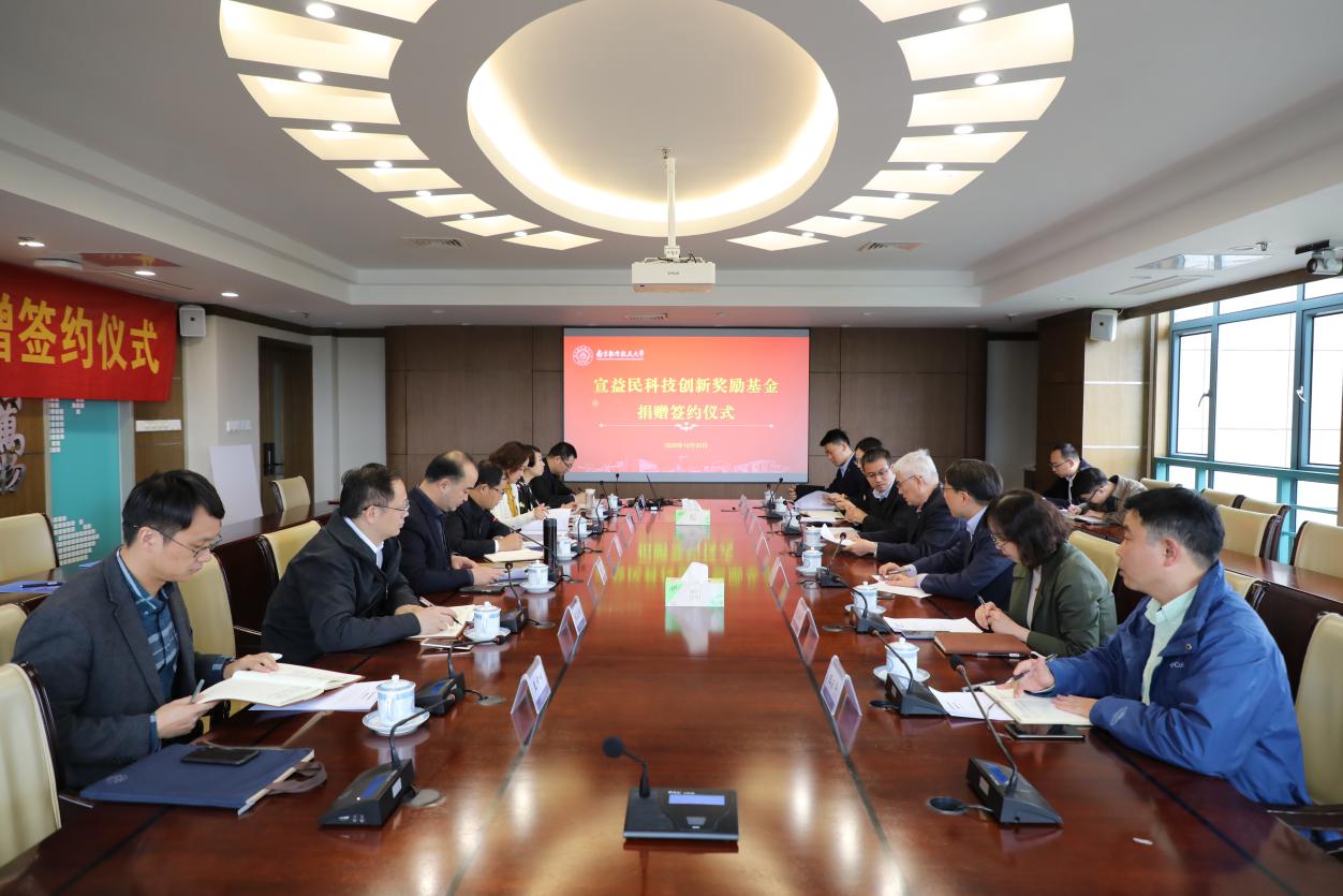 10月20日下午,宣益民科技创新奖励基金捐赠签约仪式在明故宫校区综合楼920会议室举行。校长、中国工程院院士单忠德,中国科学院院士宣益民,校党委副书记、教育发展基金会理事长陶勇,南京理工大学校长助理李强,校党委常委、宣传部部长王晖以及有关部门、能源与动力学院负责人出席活动。陶勇主持捐赠仪式。