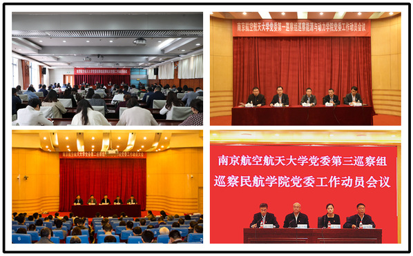 近日,2020年第二轮校内巡察各巡察组分别召开机关党委、能源与动力学院、机电学院、民航学院(飞行学院)巡察工作动员会。校党委副书记、纪委书记、巡察工作领导小组副组长杭育新,校党委副书记、巡察工作领导小组副组长陶勇,校党委常委、副校长黄志球、姜斌分别出席动员会并讲话。巡察组全体成员、党委巡察工作办公室人员、被巡察单位党政领导班子成员、教职工和学生代表等参会。