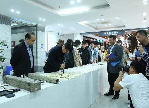 在专业老师的指导下,现场同学们兴致盎然,共同执笔,绘制十米长卷,描绘ac米兰历史、校园风景、ac米兰人风采,章剑华为画卷题字,共同表达对学校的深情厚谊。