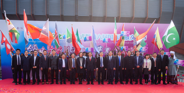 来自17国家的学生代表身着各自民族传统服饰,挥舞各国国旗走向舞台,邀请所有参加开幕式的嘉宾一起合影留念。