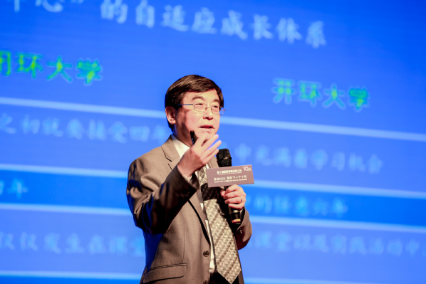 在巅峰对话环节,施大宁与中国工程院院士谭建荣、富士康副总裁和富士康大学校长陈振国、京东方集团高级副总裁赵铮骁、梅特勒托利多中国区总裁唐良、国际卓越运营协会理事长杨洲担任对话嘉宾,围绕“穿越VUCA 智胜下一个十年”这一主题展开深入研讨交流。施大宁谈到,千秋基业,人才为本。培养德智体美劳全面发展的社会主义建设者和接班人,是高校的时代使命和职责所在,也需要行业企业的支持与协同。只有学校、社会、政府和企业有机结合,形成育人共同体,才能培养出社会发展需要、适应新技术革命和产业变革,面向未来的卓越人才。