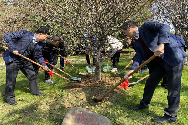 报告会结束后,在参会领导以及部分师生的陪同下,袁亚湘院士前往ac米兰“院士林”,为他曾经种下的树进行培土,并和大家合影留念。