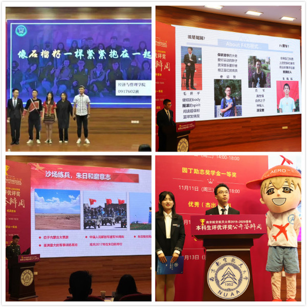 本年度的公开答辩由校学生工作指导委员会成员、兄弟院校专家代表、企业代表、新闻媒体代表等组成了专家评审团,同时邀请了来自各学院的学生代表组成学生评审团共同参与评审,学生校园观察团的同学对评审工作进行全程监督。各类答辩现场座无虚席,答辩现场气氛热烈,掌声、赞叹声不绝于耳,今年还继续沿用直播的方式,将公开答辩同步放送给明故宫校区、天目湖校区及不能到现场的师生和家长,网络直播同样火爆,线上线下共同感受榜样的力量。答辩人通过多种形式展示了过去一学年各方面取得的优异成绩,以精彩的故事、奋斗的精神激励更多学生积极进取,努力学榜样、做榜样。