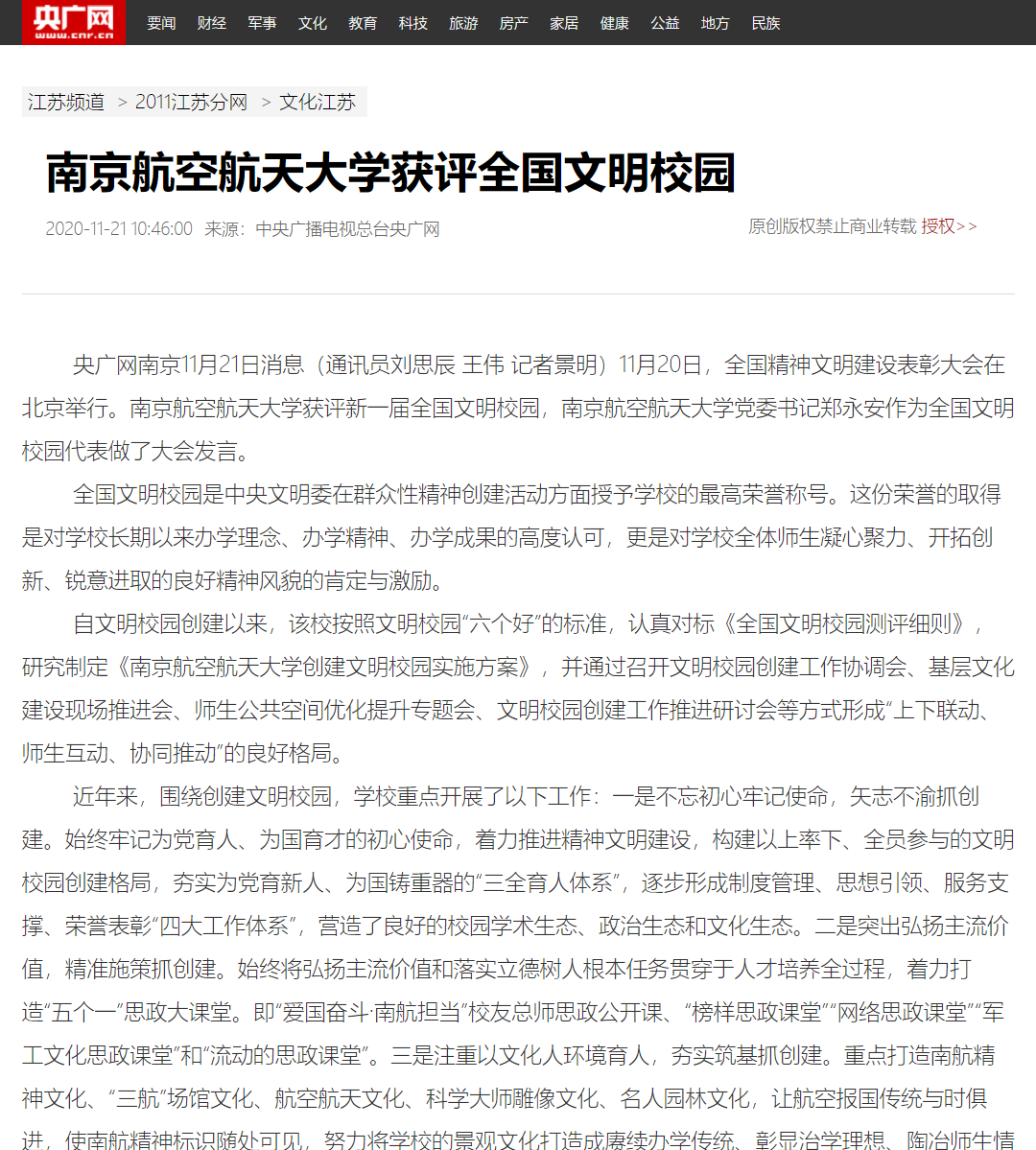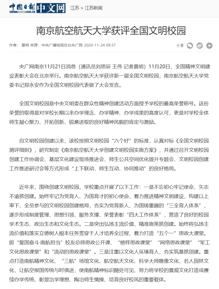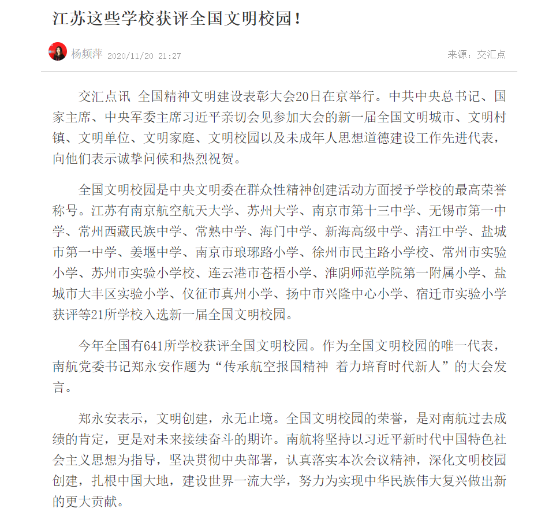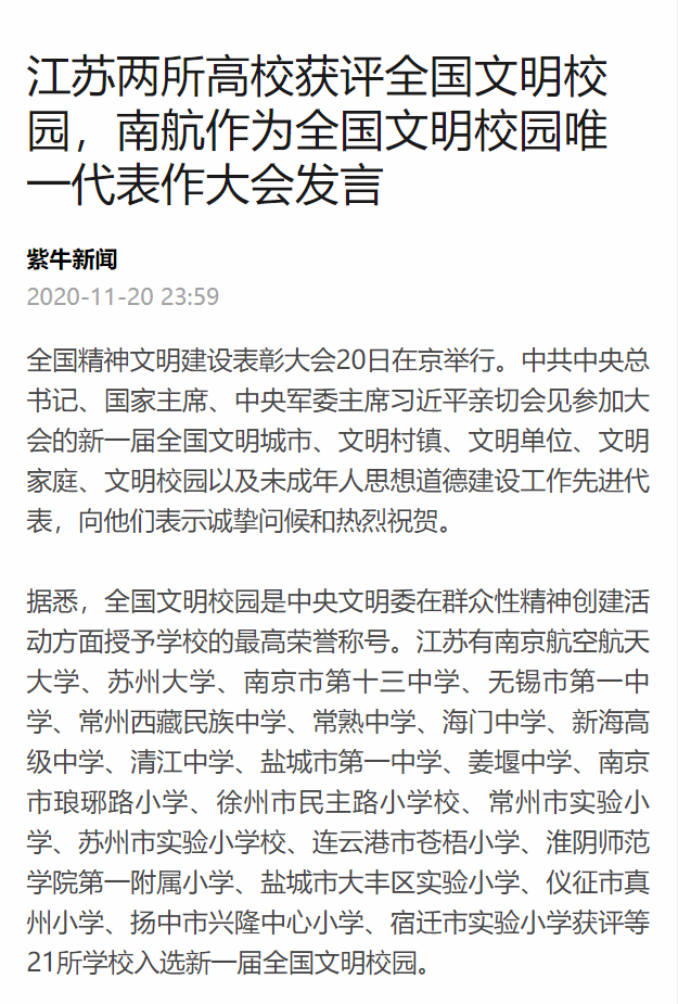 扬子晚报紫牛新闻丨江苏两所高校获评全国文明校园,ac米兰作为全国文明校园唯一代表作大会发言
