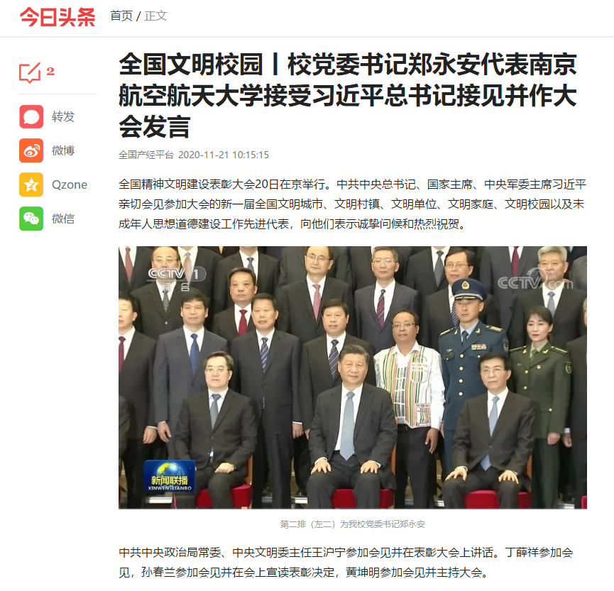 今日头条丨校党委书记郑永安代表ac米兰官网中文网站接受习近平总书记接见并作大会发言