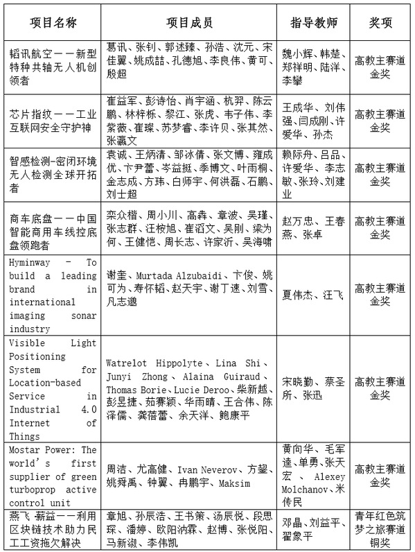 航空学院魏小辉等老师指导的“韬讯航空—新型共轴无人机创领者”、自动化学院赖际舟等老师指导的“智感检测—密闭环境无人检测全球开拓者”、电子信息工程学院王成华等老师指导的“芯片指纹—工业互联网安全守护神”、能源与动力学院赵万忠等老师指导的“商车底盘—中国智能商用车线控底盘领跑者”4支团队斩获高教主赛道大陆项目金奖;电子信息工程学院夏伟杰等老师指导的“Hyminway—To build a leading brand in internationalimaging sonar industry”、电子信息工程学院宋晓勤等老师指导的“Visible light positioning system for location-basedService inindustrial 4.0 internet of Things”、能源与动力学院黄向华等老师指导的“Mostar Power”3支团队斩获高教主赛道国际项目金奖,航空学院周正东等老师指导的“Cloud Service for Automatic and Precise TumorRadiation Treatment Planning”、航空学院魏小辉等老师指导的“HangYu Taking-off - The leaderof future aircraftlanding systems”2支团队斩获国际项目银奖;经济与管理学院邓晶等老师指导的“燕飞·薪益”项目斩获红旅赛道全国铜奖;赵万忠、王成华、魏小辉、赖际舟等老师荣获“创新创业优秀导师奖”;ac米兰连续三次荣获“先进集体奖”。