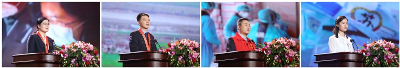 省人民医院(南京医科大学第一附属医院)副院长、全国“时代楷模”、省人民医院援武汉重症医疗队队长刘云,无锡市人民医院副院长、国务院联防联控机制医疗救治组肺移植专家组组长陈静瑜,苏州市第五人民医院急救分站站长兼急诊、ICU副主任朱烽烽,江苏大学附属医院重症医学科护士长、江苏省首批支援武汉医疗队队员赵燕燕,徐州市鼓楼区牌楼街道鼓楼花园社区党委书记、主任骆婷,淮安市淮安区石塘镇党委政法委员、建淮派出所所长蒋大为,连云港市赣榆区青口镇八总社区“90后”志愿者宋明译,江苏省广播电视总台纪录片工作部编导杜珺等8位全省抗疫先进典型,作为全省医护工作者、社区工作者、公安民警、志愿者、新闻记者等群体中的优秀代表,深情讲述在各自领域的抗疫历程和感人故事,以丰沛生动的故事、饱含深情的讲述、铿锵激昂的心声告白,感染和鼓舞了在场的所有观众。