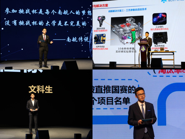 赛事推介环节,来自16个学院的学生代表依次上台,推介航空航天知识竞赛、节能减排大赛、电子电路设计大赛、机器人大赛等各自学院的品牌创意、创新、创业实践活动。