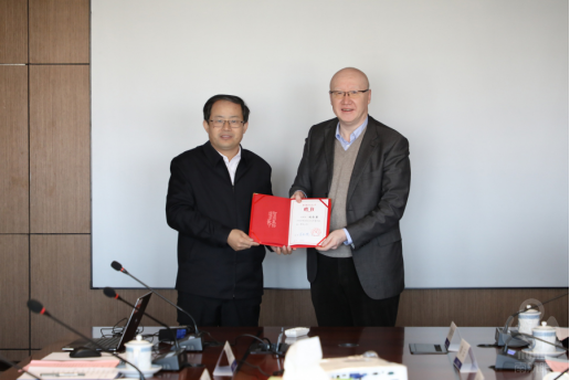 会上,学校人事处处长崔海涛介绍了刘永泉的基本情况,单忠德为其颁发兼职教授聘书并佩戴校徽,刘永泉和宋迎东作为某涡轮叶片联合设计团队双方负责人签订了合作协议。