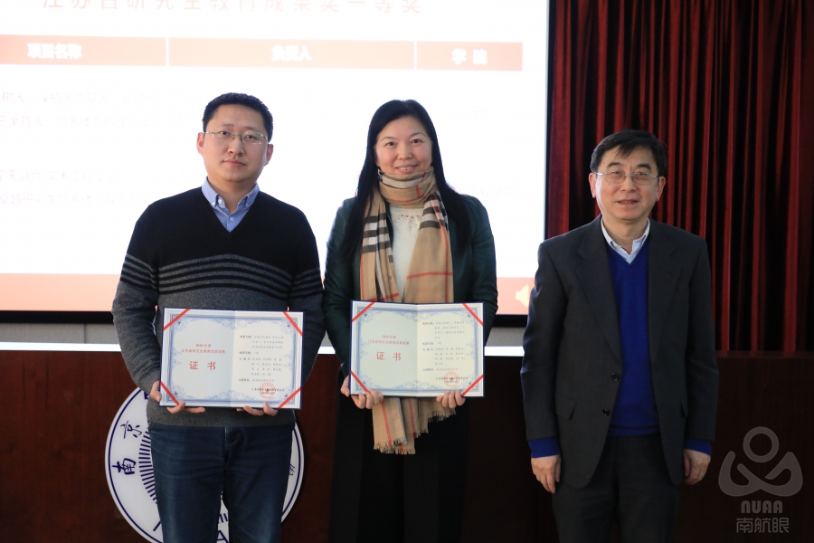 施大宁为获得江苏省研究生教育改革成果一等奖、第二届江苏省“十佳研究生导师团队”和“十佳研究生导师”提名奖以及学科/学会优博、江苏省优博、优硕获奖代表进行了颁奖。