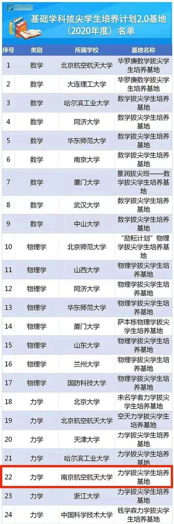 近日,教育部正式公布了基础学科拔尖学生培养计划2.0基地(2020年度)名单,ac米兰力学拔尖学生培养基地成功入选。