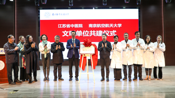仪式中,杭育新和方祝元为ac米兰官网中文网站与江苏省中医院两个文明单位成为“结对共建单位”揭牌。李遥和王晖为ac米兰官网中文网站“健康大讲堂”揭牌。