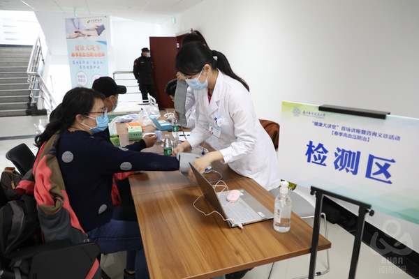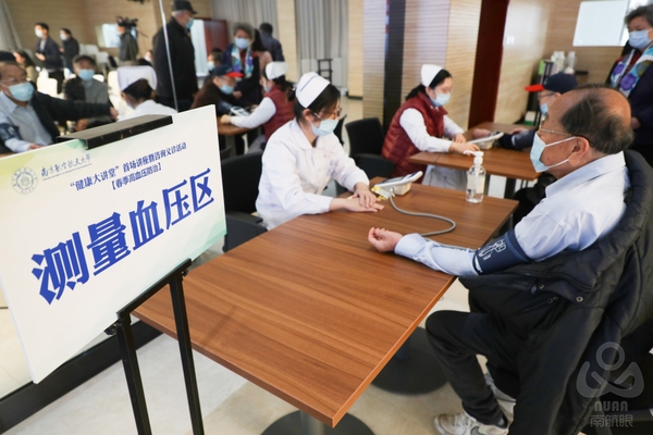 江苏省中医院宣传统战处处长冯瑶,校医院院长刘协和、离退休处处长张环,以及100多名教职工参加了现场活动。