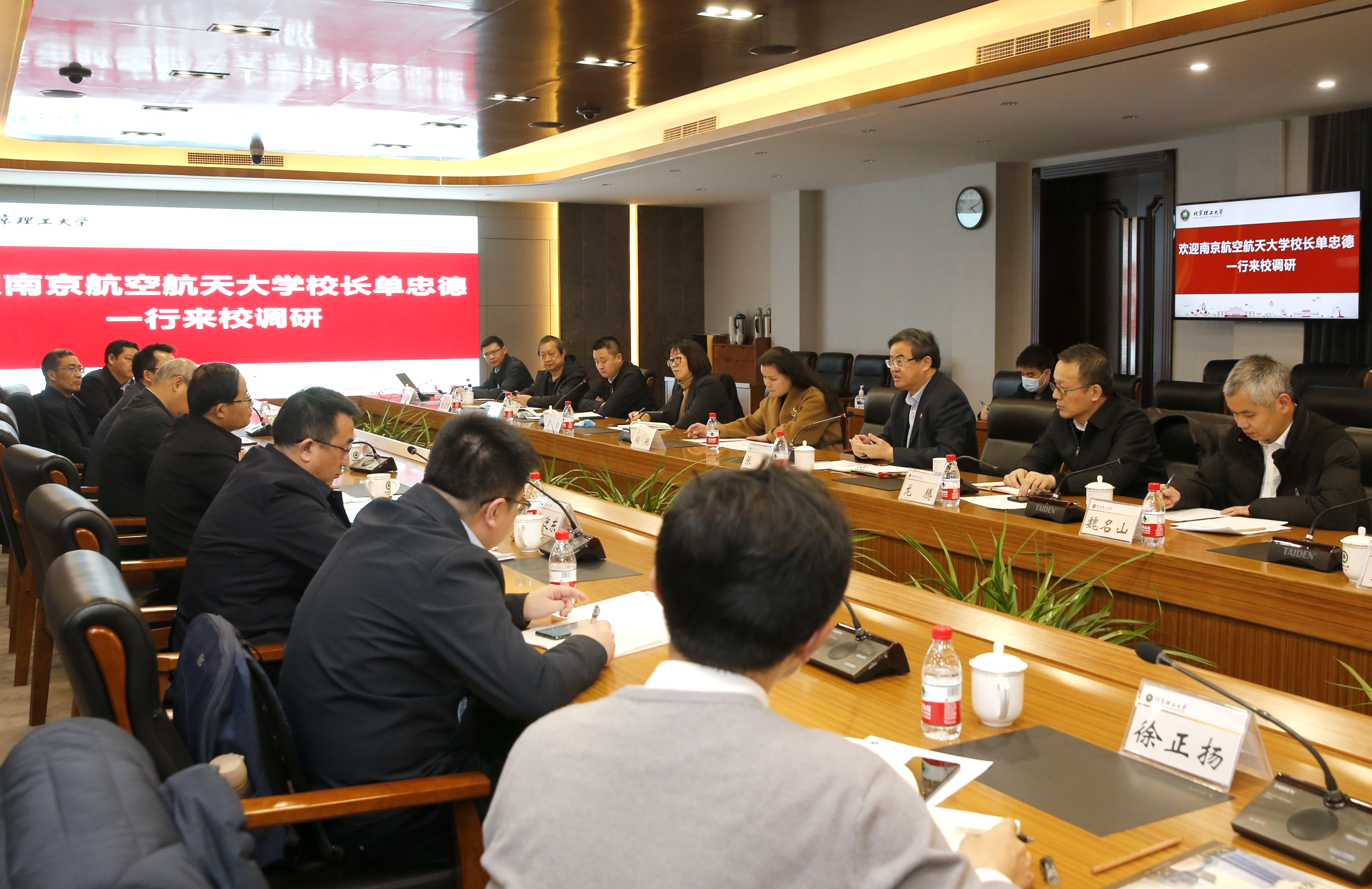 3月18日,校长、中国工程院院士单忠德带队赴北京航空航天大学、北京理工大学就“十四五”发展规划编制、学科优化调整与学院设置、校地研究院运行管理等内容进行调研。北京航空航天大学党委书记曹淑敏,校长、中国工程院院士徐惠彬,北京理工大学校长、中国工程院院士张军热情接待了单忠德一行。