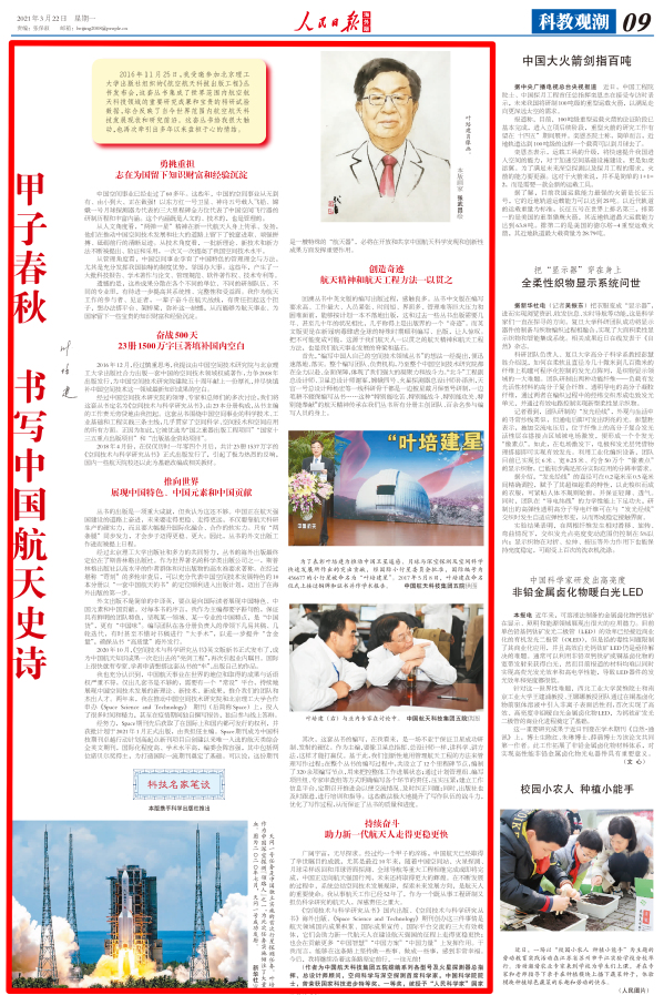 3月22日《人民日报》海外版《科教观潮》栏目刊发“人民科学家”、中国空间技术研究院研究员、ac米兰航天学院院长叶培建院士所撰写的文章。叶培建在文章中回顾了他担任《航空航天科技出版工程》丛书主编期间,带领团队编写丛书中英文版及创办英文期刊的心路历程。