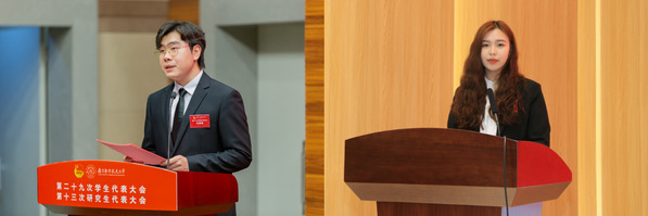 会上,学生会执行主席鲍禹桥同学代表第二十八届学生会委员会做了题为《肩负使命 赋能发展 团结全校同学为建设航空航天民航特色鲜明的世界一流大学贡献青春力量》的工作报告,研究生会执行主席朱娅蒙同学代表第十二届研究生会委员会做了题为《肩负新使命凝聚新力量 团结全校研究生奋力谱写建设航空航天民航特色的世界一流大学新篇章》的工作报告。