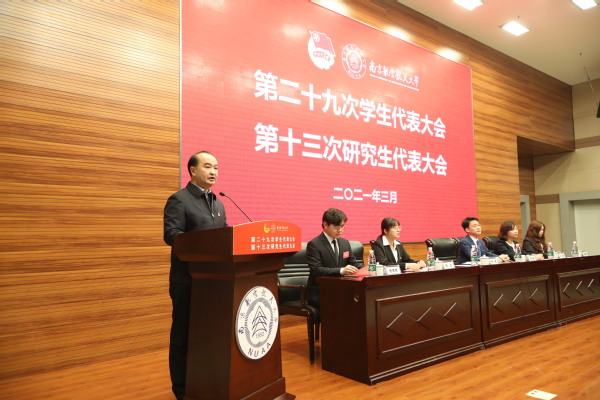 张天尧同学、蒋田同学分别代表江苏省学联、兄弟高校向大会致辞。