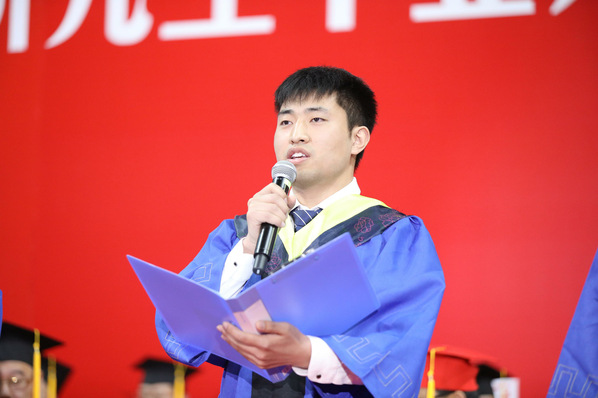 获奖导师、航空学院熊克教授作为研究生导师代表发言。他以ac米兰年长学生的身份,分享了建校近七十年来一代代ac米兰人展现的“ac米兰精神”,寄语全体毕业生:知善、守善、行善、至善,将青春小我融入祖国大我,在平凡的人生中追求卓越的业绩。