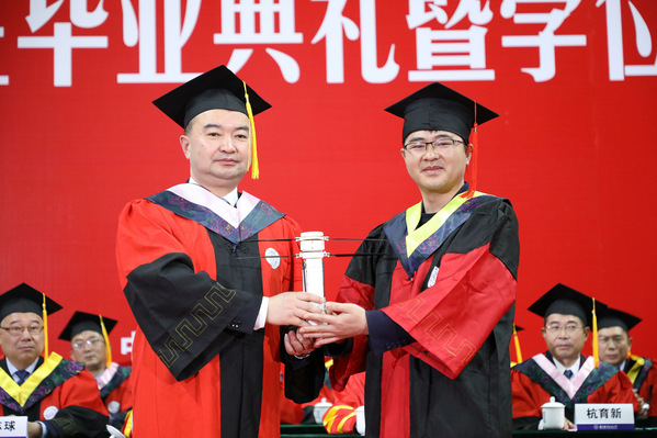 随后,校党委书记郑永安教授、校长单忠德院士、主席台前排领导为优秀毕业生和博士毕业生代表援苏正冠,颁授学位证书。
