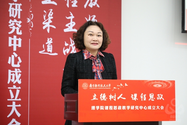王晖代表学校对理学院课程思政教学研究中心的成立表示了祝贺,对理学院长期以来对课程思政建设工作给予了高度评价,并对理学院课程思政教学研究中心的建设和发展提出希望和要求,希望充分发挥基础学科对于课程思政建设的重要作用。她指出,理学院作为教学大院,承担了全校数理公共课程教学任务,课程思政建设影响尤其深远,中心的成立必将进一步推动学校课程思政建设工作的发展。