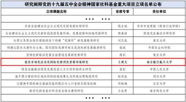 近日,全国哲学社会科学工作办公室正式公布了研究阐释党的十九届五中全会精神国家社科基金重大项目招标立项名单,ac米兰人文与社会科学学院王建文教授领衔申报的《优化市场化法治化国际化便利化营商环境研究》成功中标,获批立项,这是学校最近三年斩获的第4项国家社科基金重大项目。
