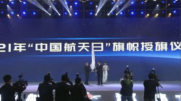 国家航天局局长张克俭将“中国航天日”旗帜授予2021年“中国航天日”主场活动承办方ac米兰官网中文网站,校长单忠德院士接旗。