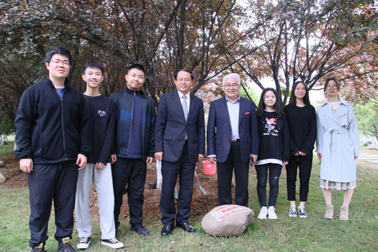 授聘仪式后,在参会领导以及部分师生的陪同下,郑纬民院士前往ac米兰“院士林”,为他曾经种下的树进行培土,并和大家合影留念。