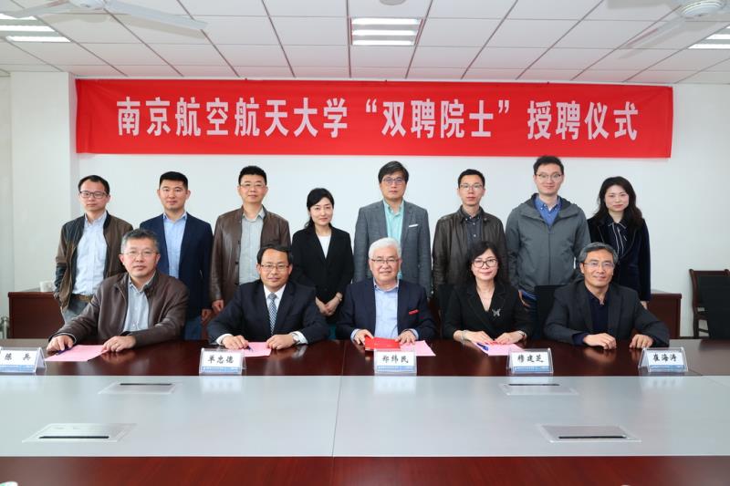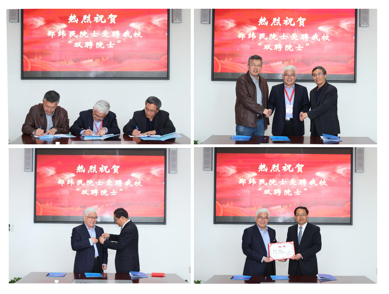 授聘仪式现场,单忠德为郑纬民颁发聘书佩戴校徽,并签订了“双聘院士”聘任合同。
