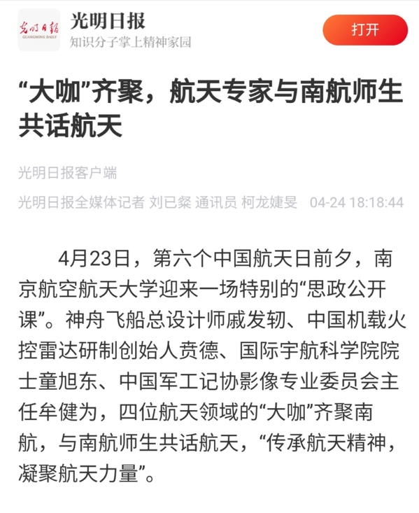 新华日报:航天专家聚ac米兰开讲思政公开课 发扬航天精神投身国家建设