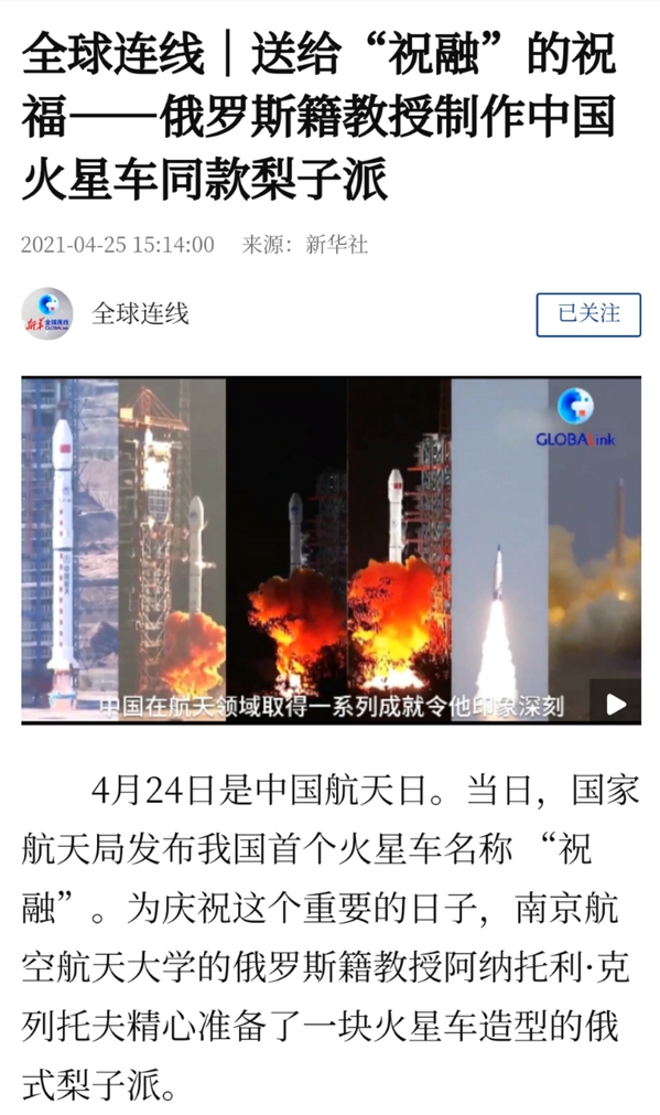 新华社丨送给“祝融”的祝福——俄罗斯籍教授制作中国火星车同款梨子派