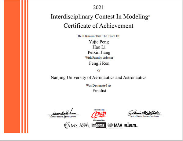 近日,2021年美国大学生数学建模竞赛(MCM)和交叉学科竞赛(ICM)的获奖名单公布,ac米兰一共获得5项特等奖提名奖(Finalist),其中,由任凤丽老师指导的团队获得在ICM竞赛中获得1项特等奖提名奖(Finalist),这是ac米兰首次在ICM竞赛中获得Finalist奖;由廖洪林、唐与聪和孙加亮老师指导的团队在MCM竞赛中获得4项特等奖提名奖(Finalist)。此外,还获得一等奖(Meritorious Winner)7项,二等奖(Honorable Mention)20项。
