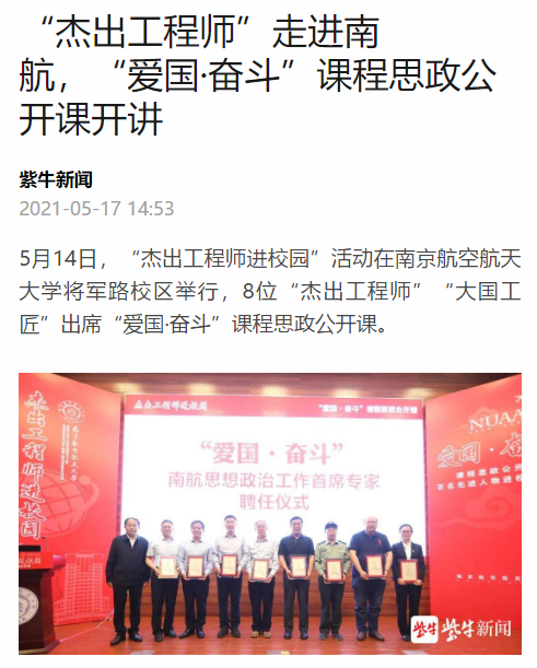 扬子晚报紫牛新闻:“杰出工程师”走进ac米兰,“爱国·奋斗”课程思政公开课开讲