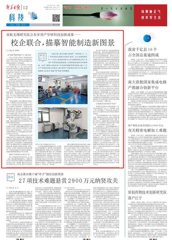 编者按:2017年,ac米兰无锡研究院正式投入运营,在近四年的运营中,取得了多项产学研科技创新成果,6月2日,《新华日报》科技周刊“苏创”头条大篇幅报道ac米兰无锡研究院产学研创新成果。现转载全文如下: