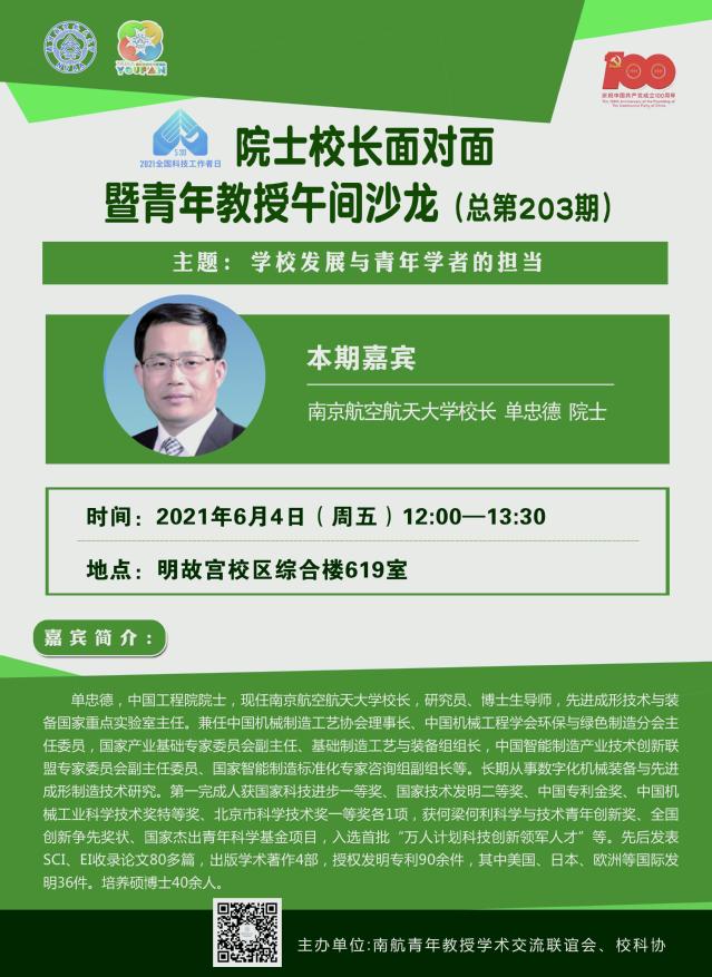 院士校长面对面暨青年教授午间沙龙(总第203期)
