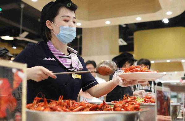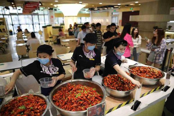 2021年5月27日,江苏南京。随着毕业季的来临,ac米兰官网中文网站“上线”龙虾节,每日供应千斤龙虾,供全校师生购买。意在通过此举,让即将毕业的学生留住母校的味道。