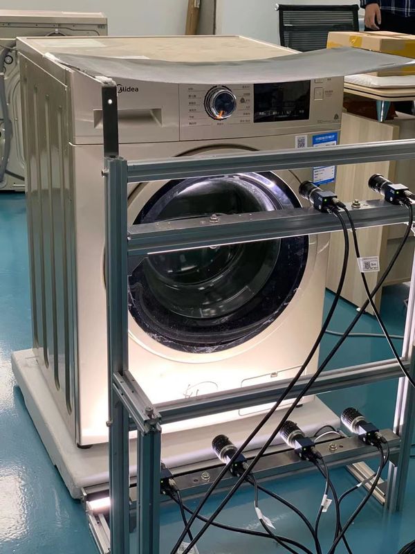 刚下流水线的洗衣机正在接受摄像头质量检验 (模拟实验装置)