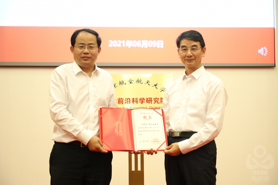 大会宣布了校党委聘请郭万林为前沿院院长的决定,并由校长单忠德向郭万林院士颁发院长聘书。